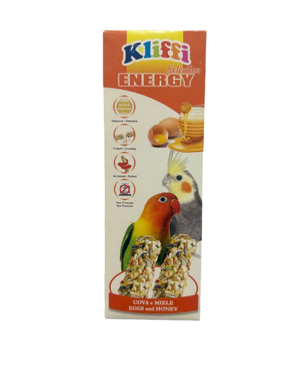 ترکیبی خوشمزه از دانه های مقوی و عسل طبیعی، قالب گیری شده به شکل کلیف برای نصب آسان روی میله قفس و مناسب انواع طوطیسان