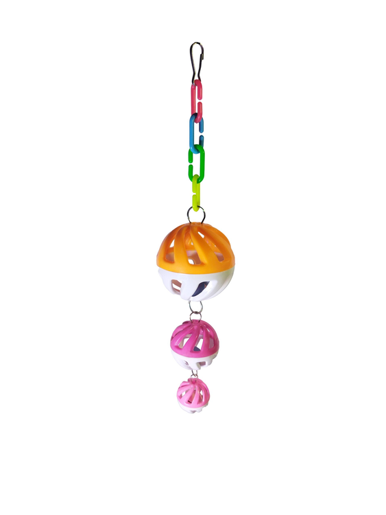 اسباب بازی سه توپ طوطی شامل سه توپ رنگی سبک با صدای جغجغه ای است که حس کنجکاوی و بازی طلبی پرنده را تحریک کرده، به کاهش استرس و پیشگیری از پرکنی کمک می کند و مناسب انواع طوطی های کوچک و متوسط می باشد.